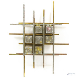 • Lot n° 0105 Applique in metallo e vetro, Albano Poli per Poliarte, anni '70, 73x93x22, (difetti, mancanze)