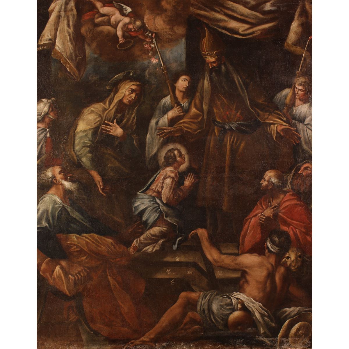 Domenico Brugieri, seguace di - "Presentazione di Maria Vergine al Tempio", olio su tela - 134x106 cm. -