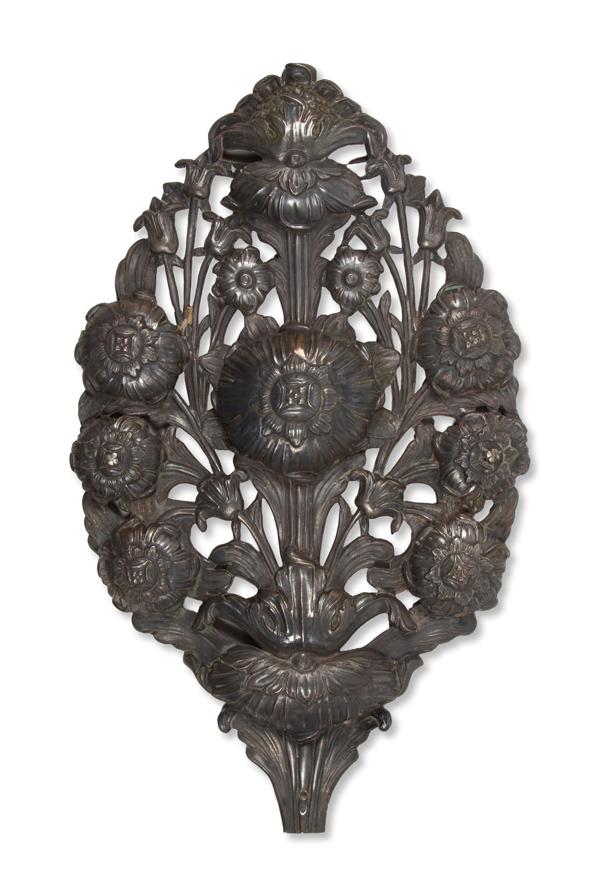 • Lot n° 0052 Palma in argento - Palma in argento sbalzato e traforato, gr. 695 ca. Punzone alla base. Probabilmente Napoli. XVIII secolo. Difetti. - 50x30 cm ca. -