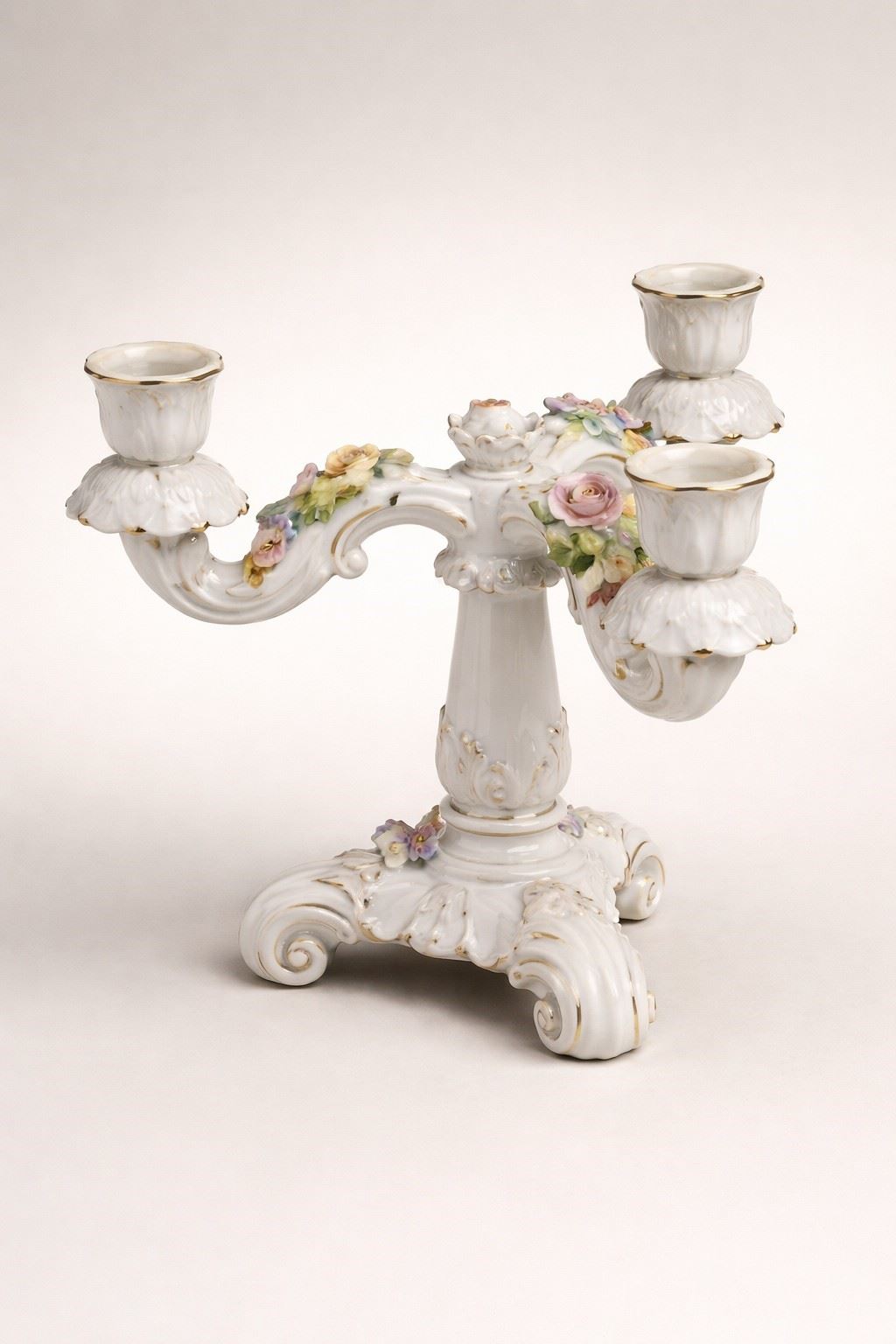 Candeliere a tre fiamme - In porcellana.I lotti oggetto della presente asta sono ubicati presso un’abitazione privata sita in Roma.La partecipazione all’asta implica la piena accettazione della condizione secondo cui il ritiro dei beni aggiudicati sarà interamente a cura, rischio e spese dell’aggiudicatario.Resta inteso che eventuali operazioni di smontaggio, imballaggio, trasporto e ritiro dovranno essere organizzate direttamente dall’aggiudicatario.Si raccomanda pertanto di richiedere preventivamente tutte le informazioni necessarie, anche al fine di acquisire eventuali preventivi per il trasporto prima di formulare un’offerta. - 18 x 17 cm -