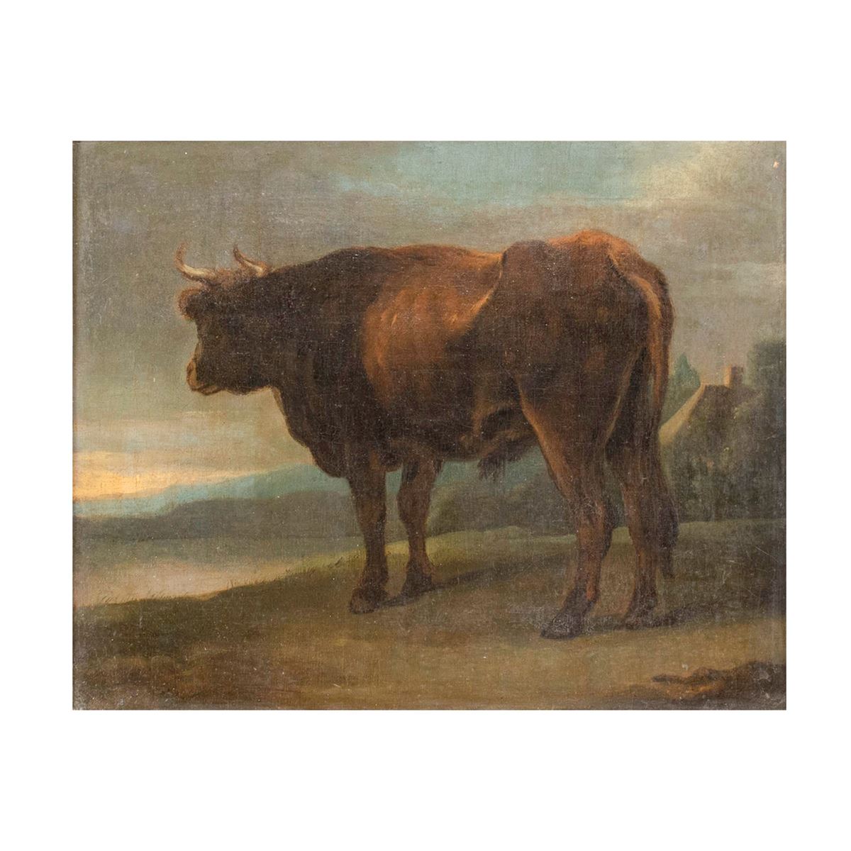 • Lot n° 0103 Nicolaes Pietersz Berchem, attribuito - "Bovino con sfondo di paesaggio", olio su tela, entro cornice - 31x38 cm. -