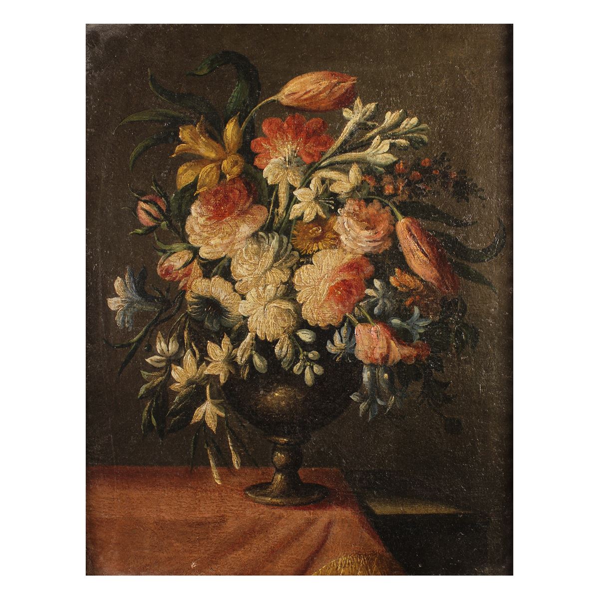 Scuola italiana - "Natura morta di fiori", olio su tela, entro cornice in legno dorato - 45,5x35,5cm. -