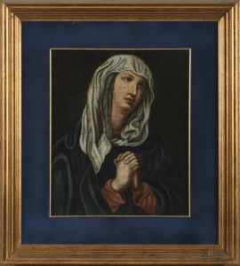 Madonna orante, XIX secolo, olio su tela, cm 44x37,5 entro cornice (craquelure)