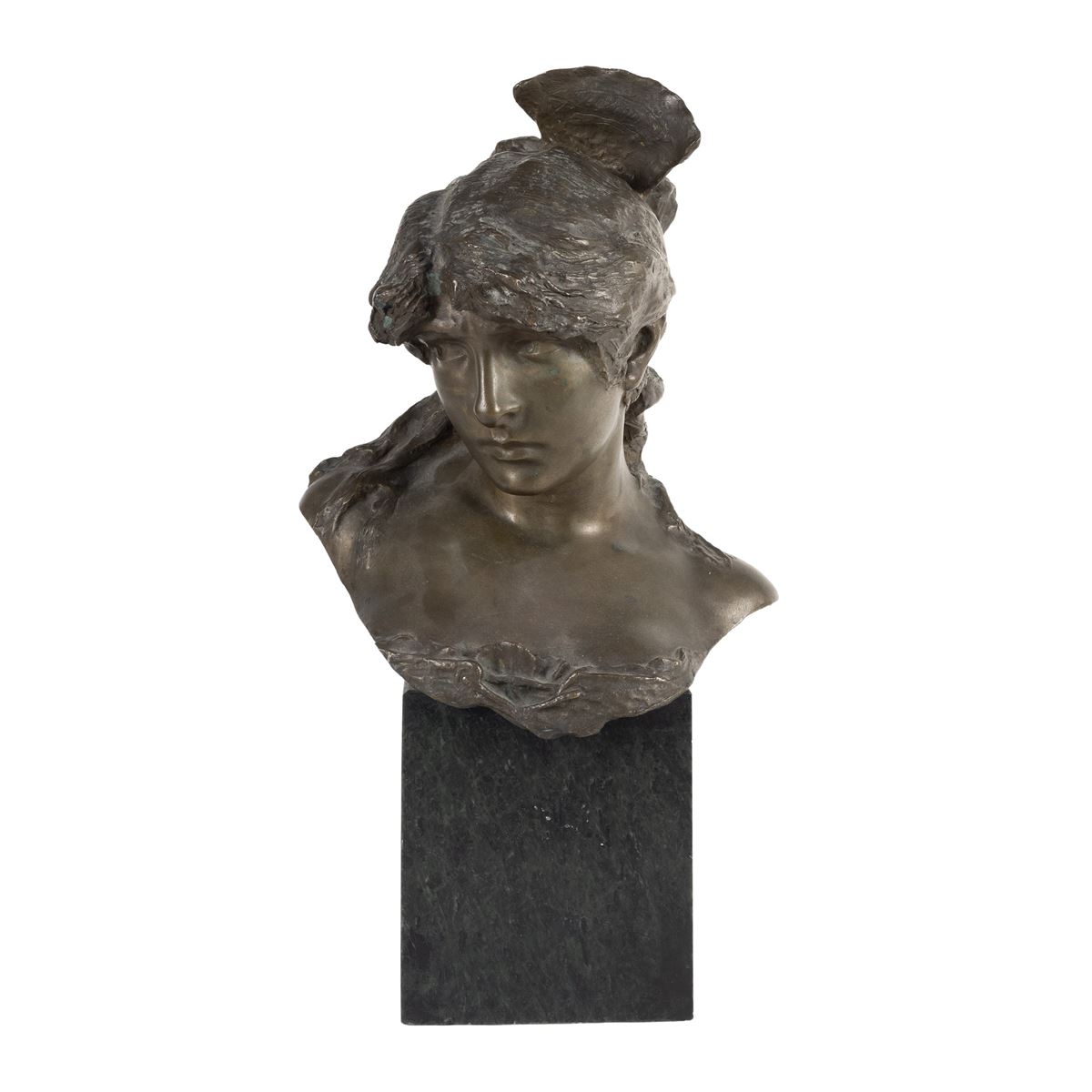 Davide Calandra - "Giovane popolana", busto in bronzo, firmato sul fermaglio, base in marmo - 28x22x19 cm. -