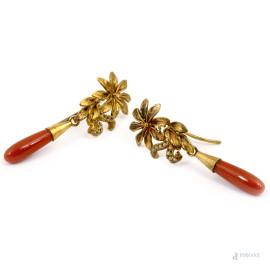 • Lot n° 0112 Coppia di orecchini in oro basso e corallo rosso, lunghezza cm 5, peso gr 8