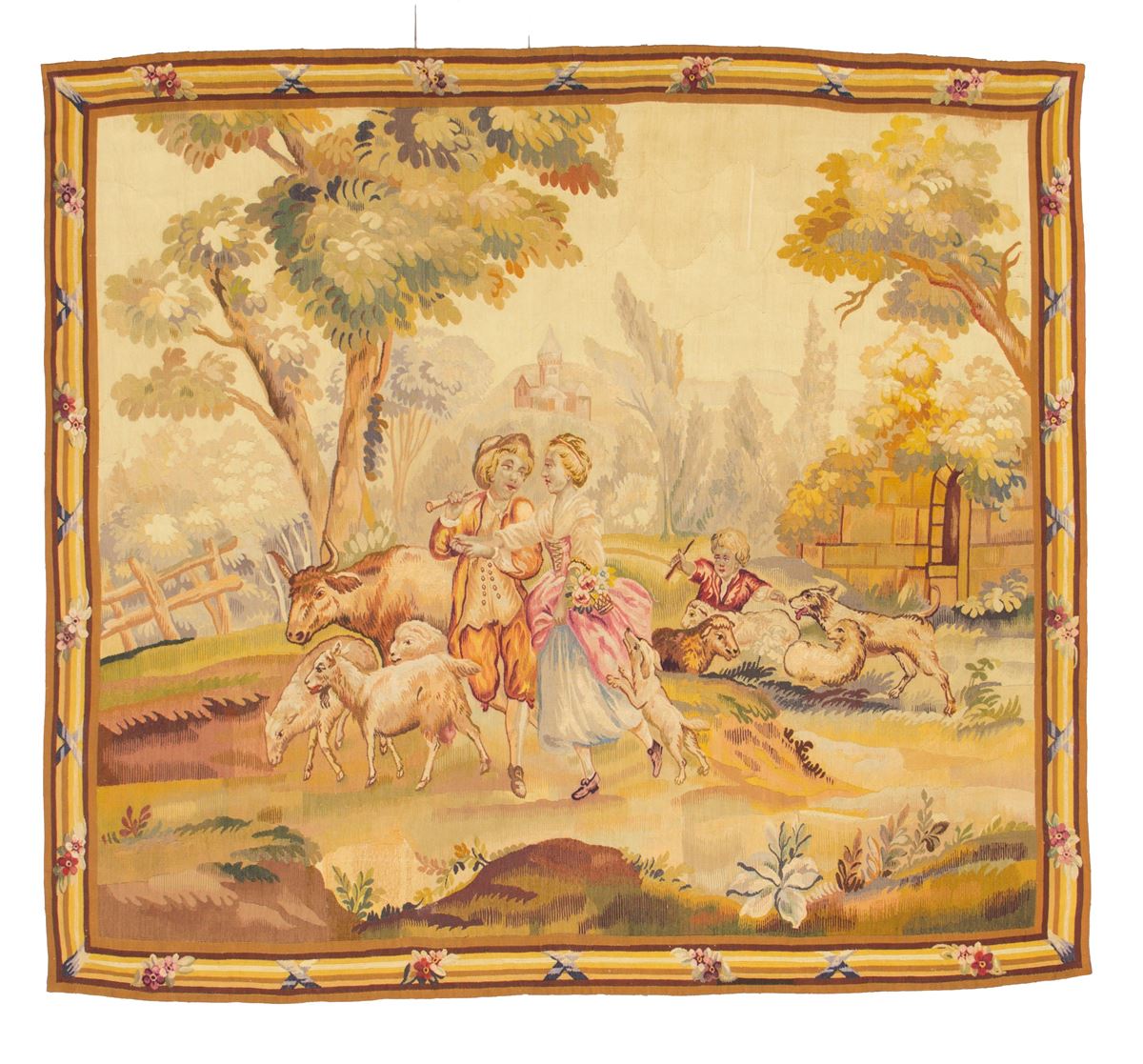 Arazzo in lana e seta. Francia - Arazzo in lana e seta. Francia. Fine XIX secolo. Ottimo stato di conservazione. - 190x172 cm ca. -