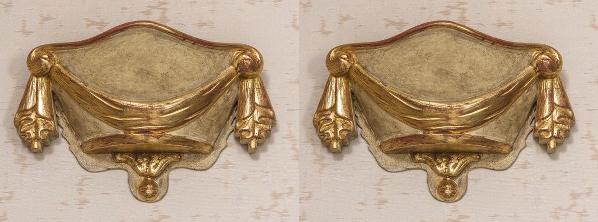 • Lot n° 0074 Coppia di fregi in legno dorato - I lotti oggetto della presente asta sono ubicati presso un’abitazione privata sita in Roma.La partecipazione all’asta implica la piena accettazione della condizione secondo cui il ritiro dei beni aggiudicati sarà interamente a cura, rischio e spese dell’aggiudicatario.Resta inteso che eventuali operazioni di smontaggio, imballaggio, trasporto e ritiro dovranno essere organizzate direttamente dall’aggiudicatario.Si raccomanda pertanto di richiedere preventivamente tutte le informazioni necessarie, anche al fine di acquisire eventuali preventivi per il trasporto prima di formulare un’offerta. - 25 x 28 cm -