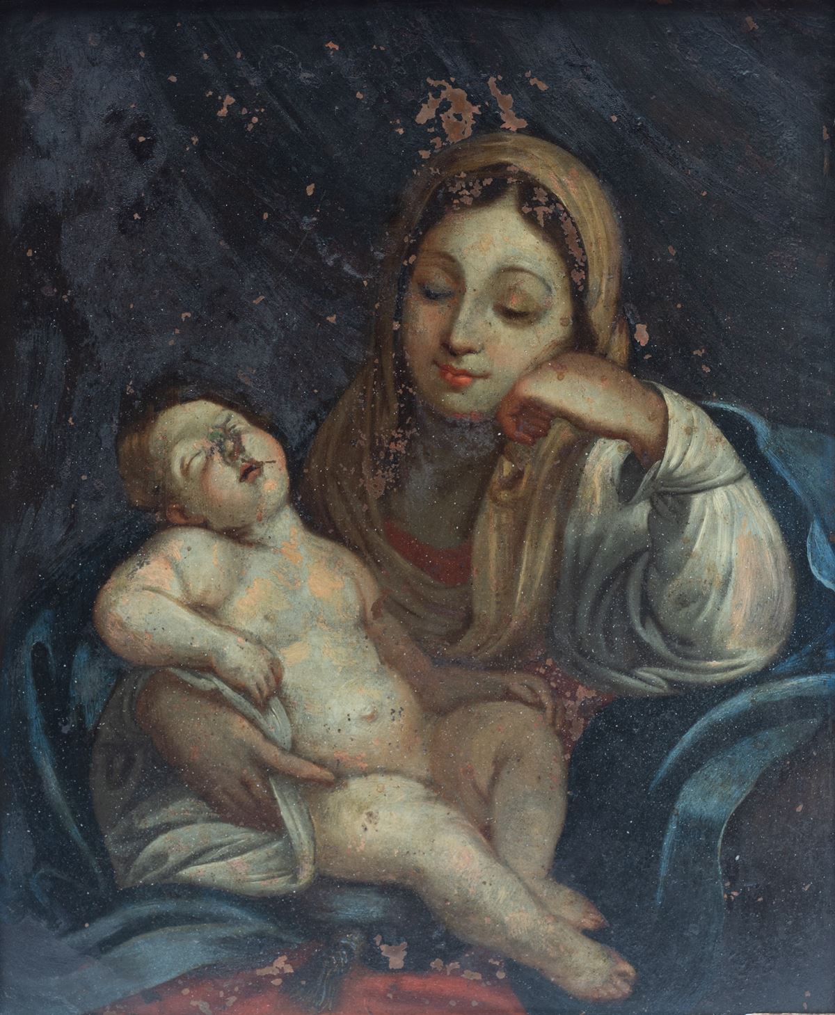 • Lot n° 0097 Madonna con bambino - Entro cornice. - 36 x 29 cm - olio su rame