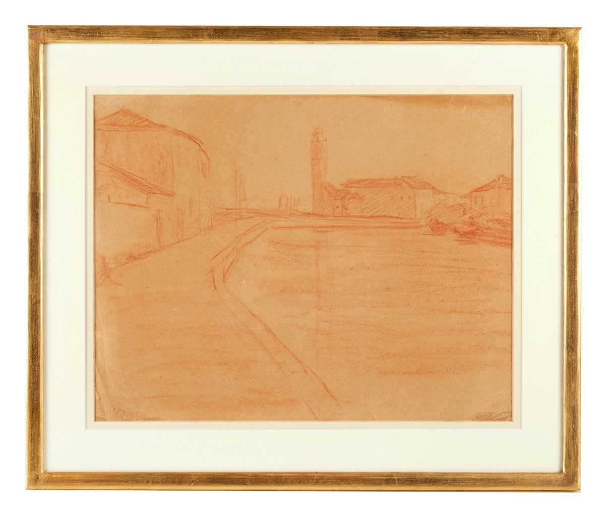 "Paesaggio lagunare", - GABRIELLA OREFICE (Padova 1893 - Venezia 1980) "Paesaggio lagunare", 1922. Sanguigna su carta. Cm 30x38. Monogramma e data in basso a sinistra. Esposizioni: La terra e il sogno. Ceglia (Ve) 15/09 - 14/10 2007. - Cm 30x38 - Sanguigna su carta
