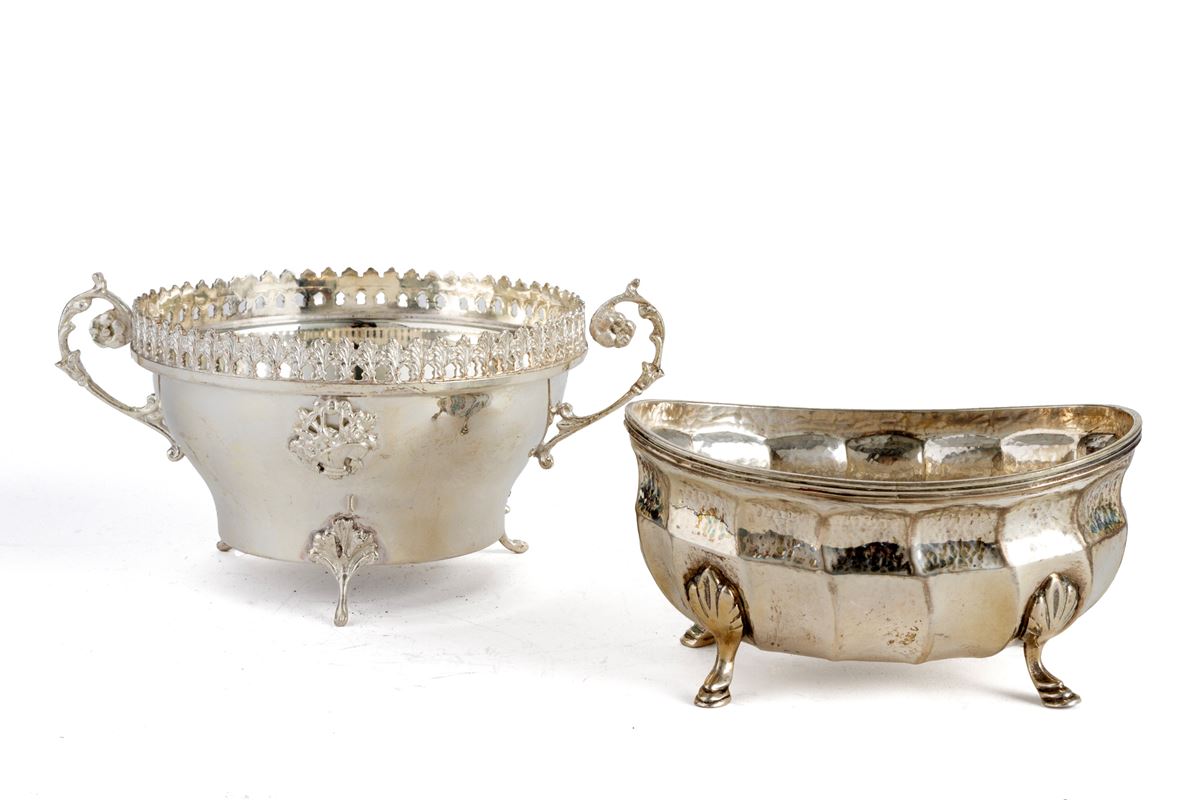 Formaggiera e salsiera in argento 800 - Formaggiera e salsiera in argento 800, gr. 390 ca. complessivi. Punzoni sul fondo. XX secolo. - -