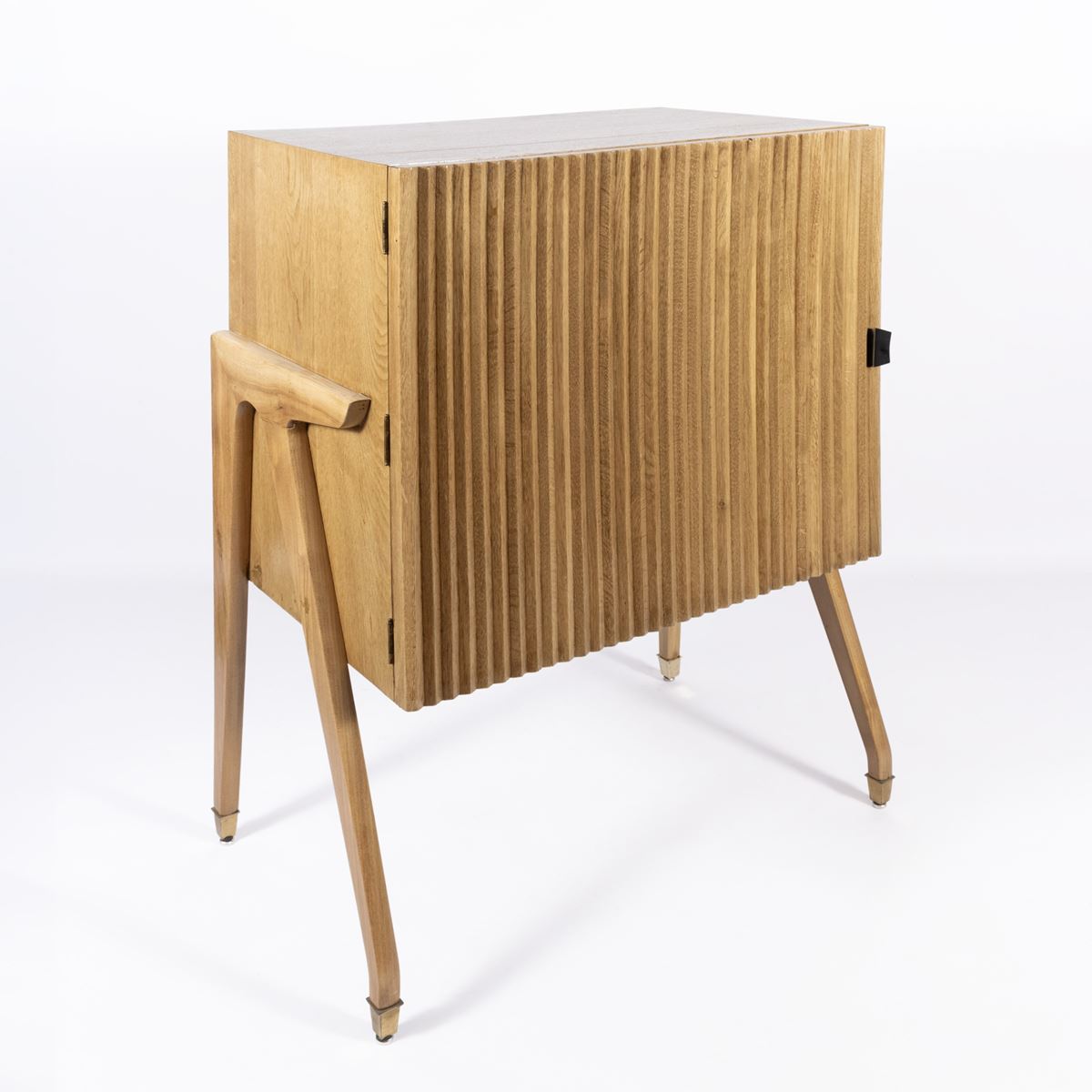• Lot n° 0101 Manifattura italiana - mobile bar in legno, ottone e vetro trasparente, lievi usure - 109x76x50 cm. -