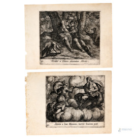 • Lot n° 0295 Antonio Tempesta, (1555 – 1630) Lotto di due acqueforti dalla serie "Le Metamorfosi" di Ovidio, foglio cm 13x17, (segni di usura ai margini)