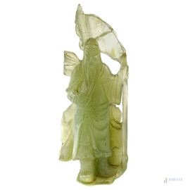 Soldato orientale, scultura in giada, XX secolo, altezza cm 20, (segni di usura, scalfiture)