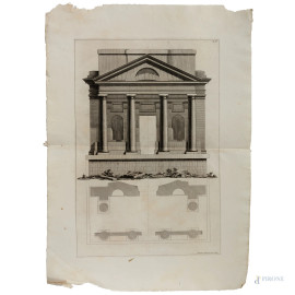 • Lot n° 0184 Giovanni Battista Piranesi (1720-1778), Acquaforte, I stato dalla serie "Architetture", foglio cm 78,5x56, segni di piegatura, tracce di usura, strappi ai margini)