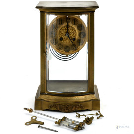 • Lot n° 0415 Pendola da tavolo in bronzo e bronzo dorato con quadrante circolare in numeri arabi, XX secolo, cm 30x18x14, (da revisionare)