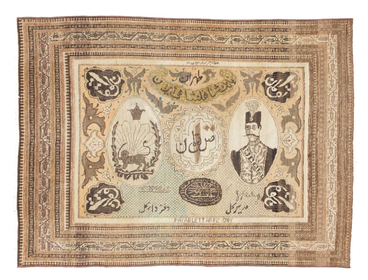 Tappeto Area di Tabriz. Persia - Tappeto Area di Tabriz raffigurante banconota d'epoca. Persia. Inizi XX secolo. Eccellente stato di conservazione. - 162x120 cm ca. -