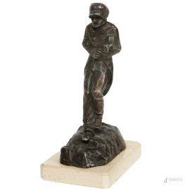 • Lot n° 0807 Scultura in bronzo brunito rappresentante un suonatore, base in marmo, da Giovanni Battista Amendola (Episcopio di Sarno 1848 - Napoli 1887), cm 21,5x13,5x9,5 (difetti)