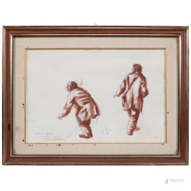 • Lot n° 0156 Pietro Annigoni(1910-1988) Figure, pastello grasso su carta, cm 39,5x57,5 dedicato, firmato e datato in numeri romani 1977, entro cornice