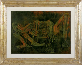 • Lot n° 0565 Scipio Moscato (XX), La scarpa, tempera su tela, cm 59x68 entro cornice, (difetti)