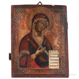 Icona dipinta con raffigurazione della Madonna, XIX secolo, cm 35x27,5, (cadute di colore, scalfiture)