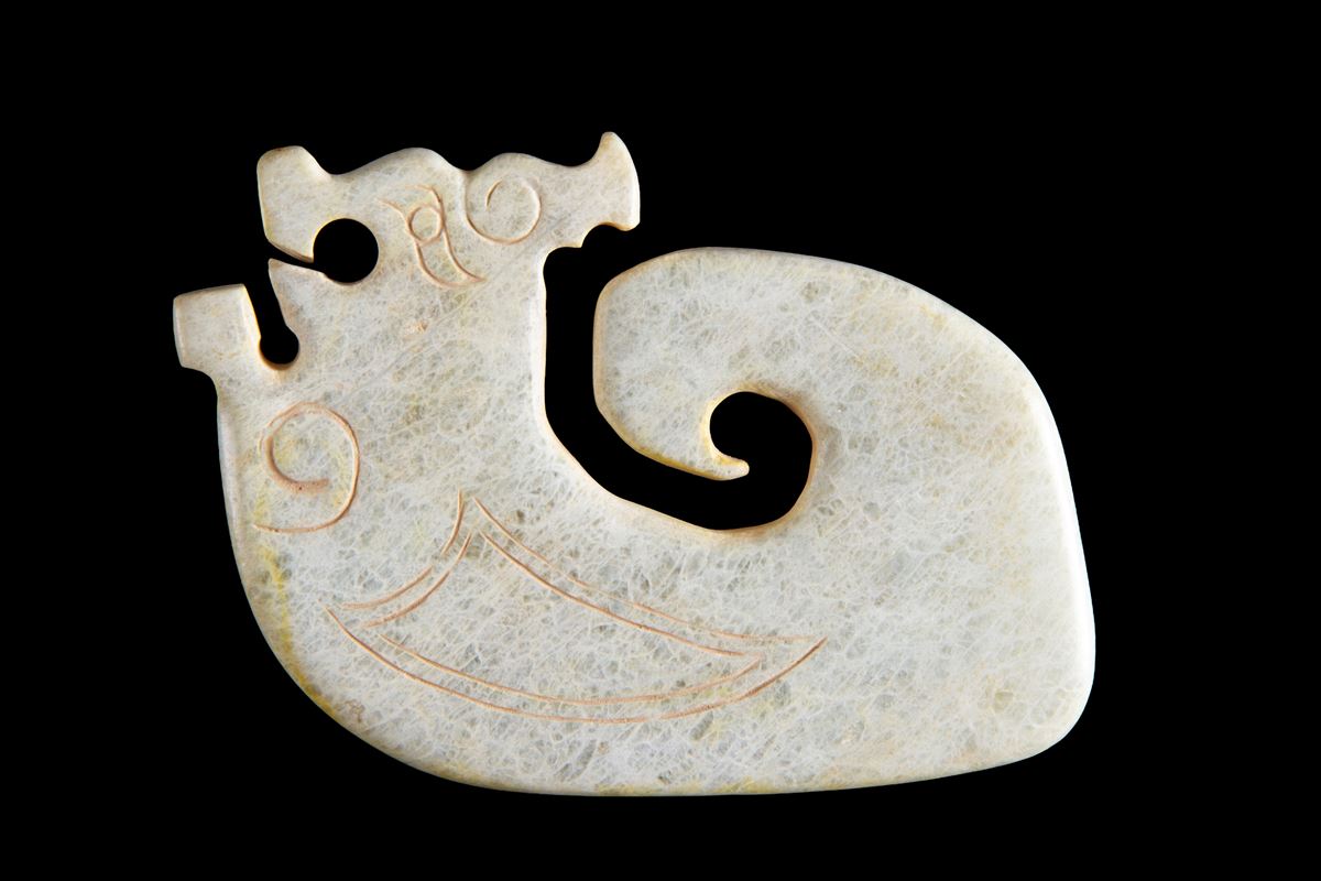 • Lot n° 0034 Placchetta in giada - Placchetta in giada traforata e incisa. Cina. - Lung. 7 cm ca. -