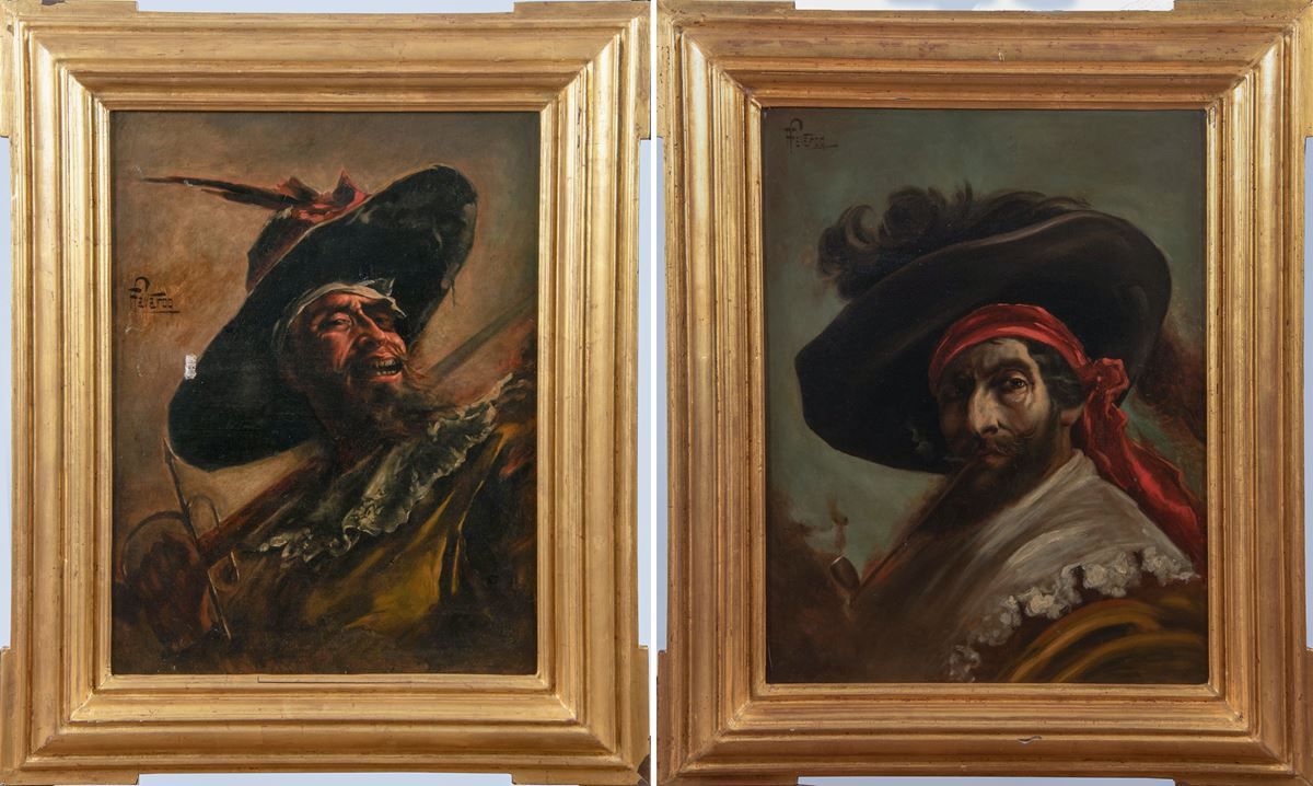• Lot n° 0104 Coppia di ritratti di corsari - Opere firmate "H. Lavarcq" in alto a sinistra; in cornice. - 65,5 X 50 cm. - Olio su tela