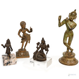 Lotto composto da 4 sculture orientali in bronzo, XX secolo, misure massime cm 25, (difetti)