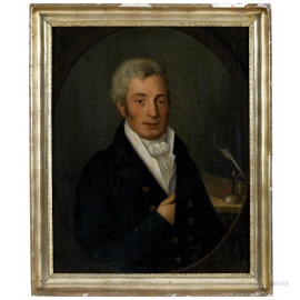 Ritratto di letterato, XIX secolo, olio su tela, cm 75x60,5 entro cornice, (difetti)