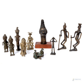 • Lot n° 0418 Lotto di 10 sculture africane in bronzo e metallo, XX secolo, altezza massima cm 31