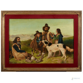 Pastori, XX secolo, olio su cartone telato, cm 57x67 entro cornice e passepartout, (ondulazioni del supporto)