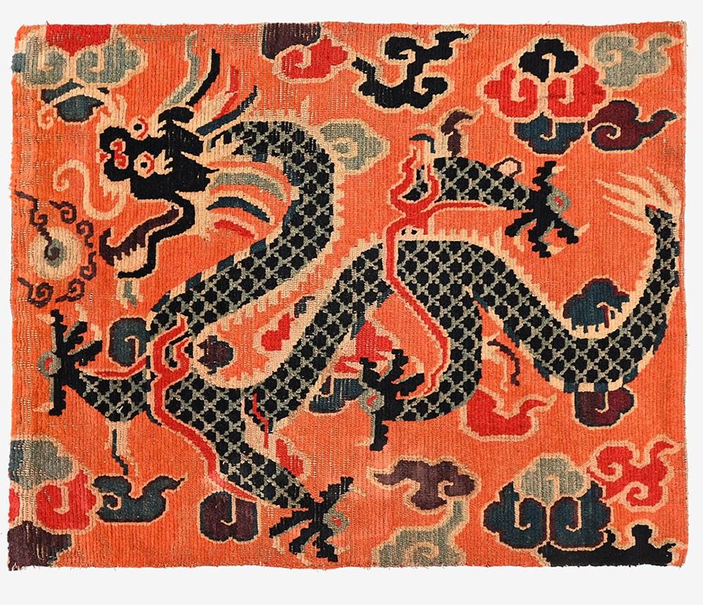 Tappeto Tibet mat a drago e nuvole - Tappeto Tibet mat a drago e nuvole. Circa 1900. Buono stato di conservazione. - 59x72 cm ca. -