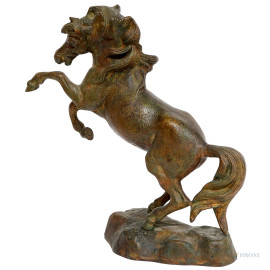 Cavallo rampante, XX secolo, bronzo, altezza cm 31,5, (difetti)
